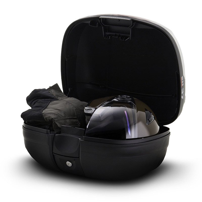 Il bauletto moto Shad SH37 permette di soddisfare i requisiti dei motociclisti che desiderano procurarsi un bauletto pratico e spazioso per un uso quotidiano. Grazie a una capacità di 37 litri (dimensioni H: 31 cm x- L: 49 cm x P: 40), permette di sistemare un casco, un impermeabile per i giorni di pioggia o un computer portatile da 15 pollici con il sistema di chiusura con bottone a pressione sicura e semplice.