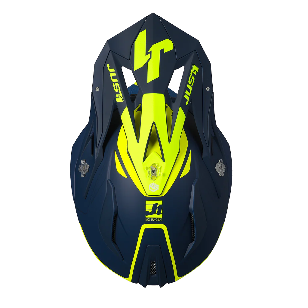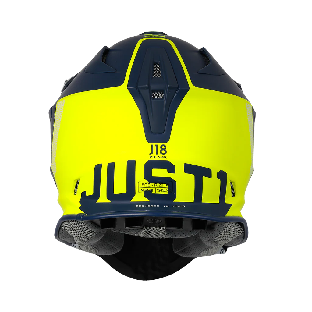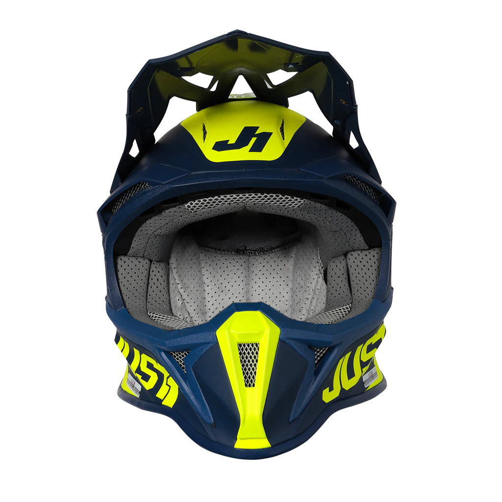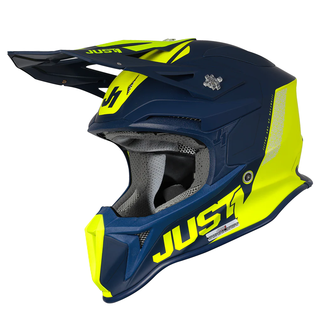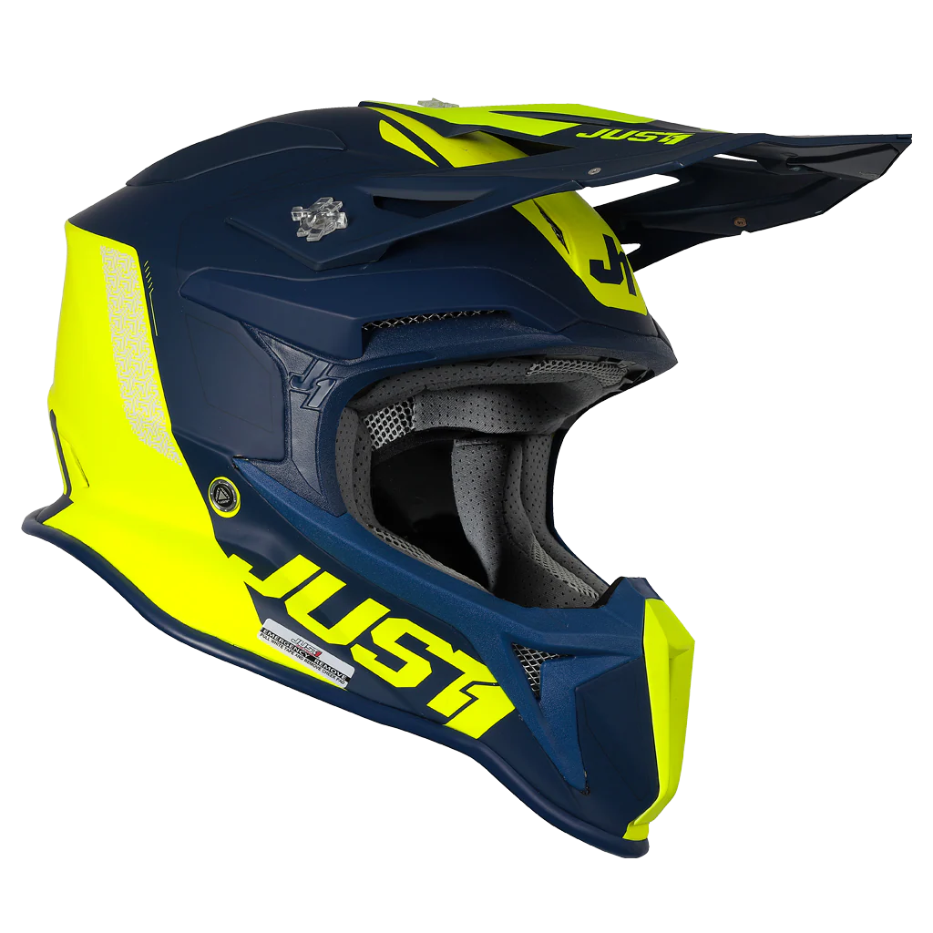 Casco Moto Cross Enduro JUST1 J18 MIPS Pulsar Matt Giallo Fluo Blu