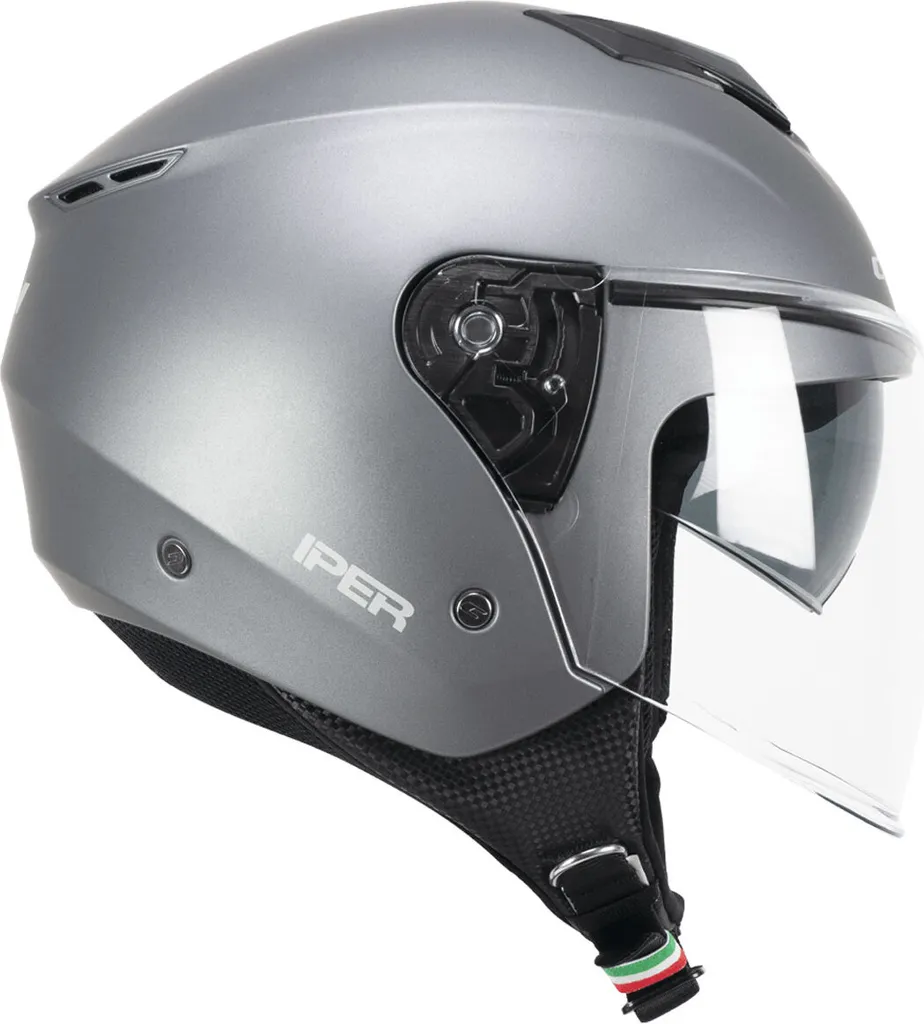 Ideato per rispondere alle esigenze di mobilitร urbana il 126 IPER รจ un demijet compatto, ergonomico e leggero costruito in HPT. Caratterizzato da una pronunciata visiera lunga con sistema basculante a sgancio rapido abbinata alla visiera parasole interna a scomparsa รจ dotato di Air Stream System per la canalizzazione del flusso d’aria all’interno del casco. Gli interni dalla tessitura ExtraCool sono realizzati inglobando guanciali e collarino paranuca per assicurare il massimo confort di calzata e sono dotati nella parte posteriore di bande riflettenti High Visibility per garantire la sicurezza passiva anche nelle ore notturne. IPER รจ inoltre equipaggiato con chiusura con fibbia micrometrica, anello antifurto al cinturino e elastico fermacinturino.